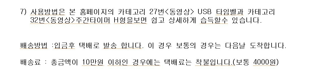 6) 사용방법은 본 홈페이지의 카테고리 27번<동영상> USB 타임벨과 카테고리 32번<동영상>주간타이머 H형을 보면 쉽고 상세하게 습득할수 있습니다.